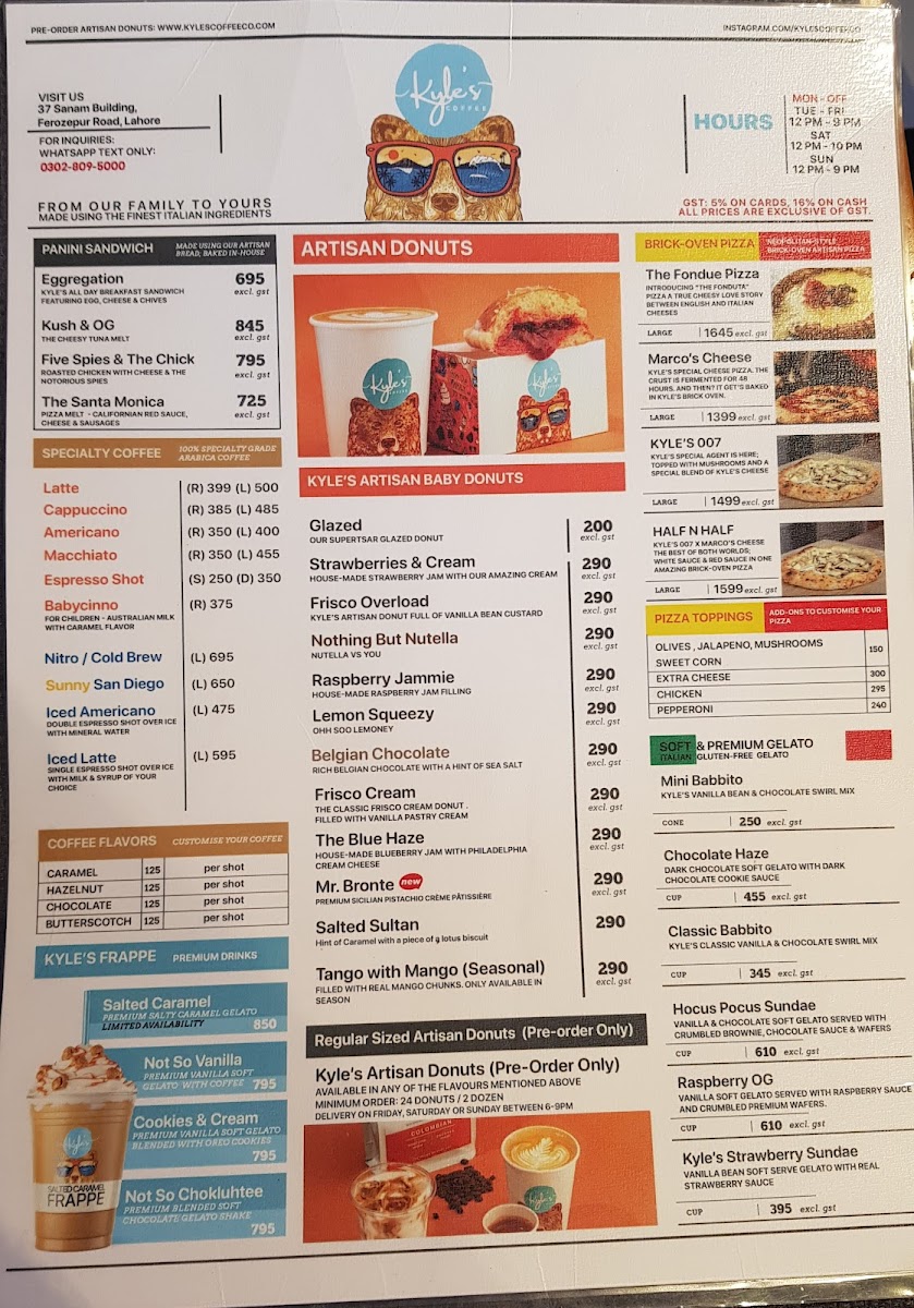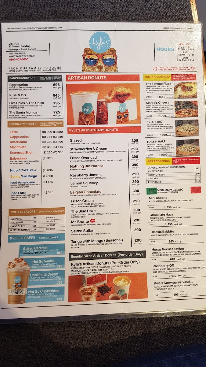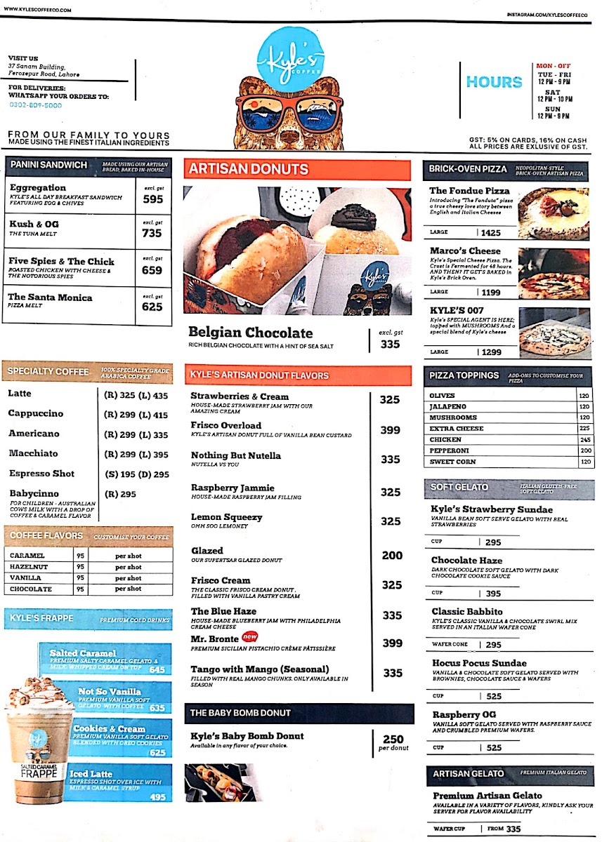 Welcome to Kyle’s Coffee Co., a delightful gem nestled on Lahore's Lahore – Kasur Rd. This cozy café excels in an artisan menu that features handcrafted coffee, delectable pizzas, and mouthwatering donuts.